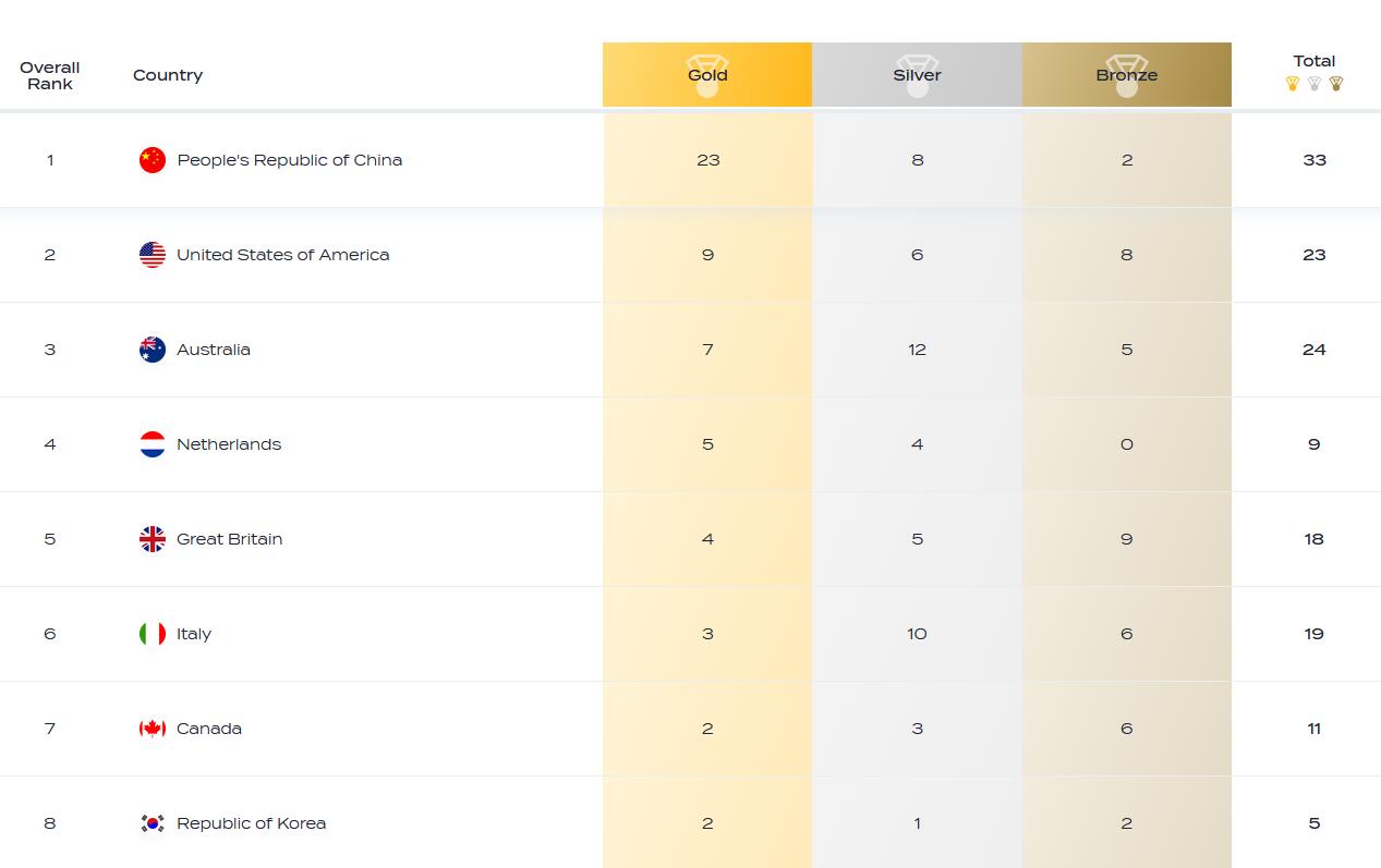 多哈世锦赛中国队双榜第一:23金33牌彰显全方位
